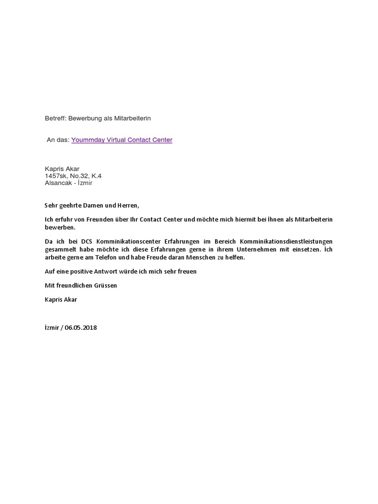Bewerbung Bei Yoummday Docx