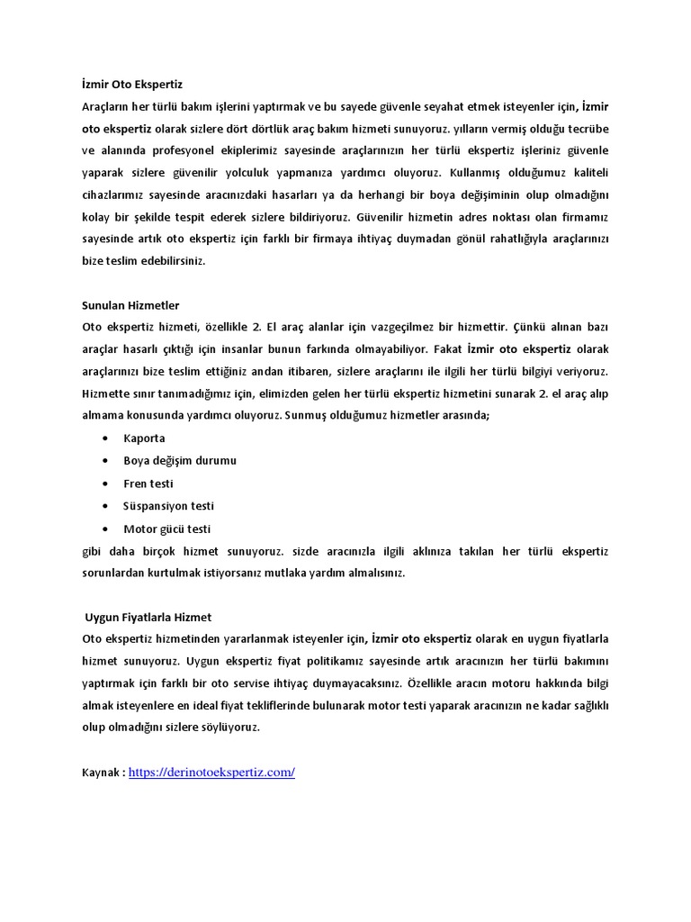 Izmir Oto Ekspertiz Fiyatlarý